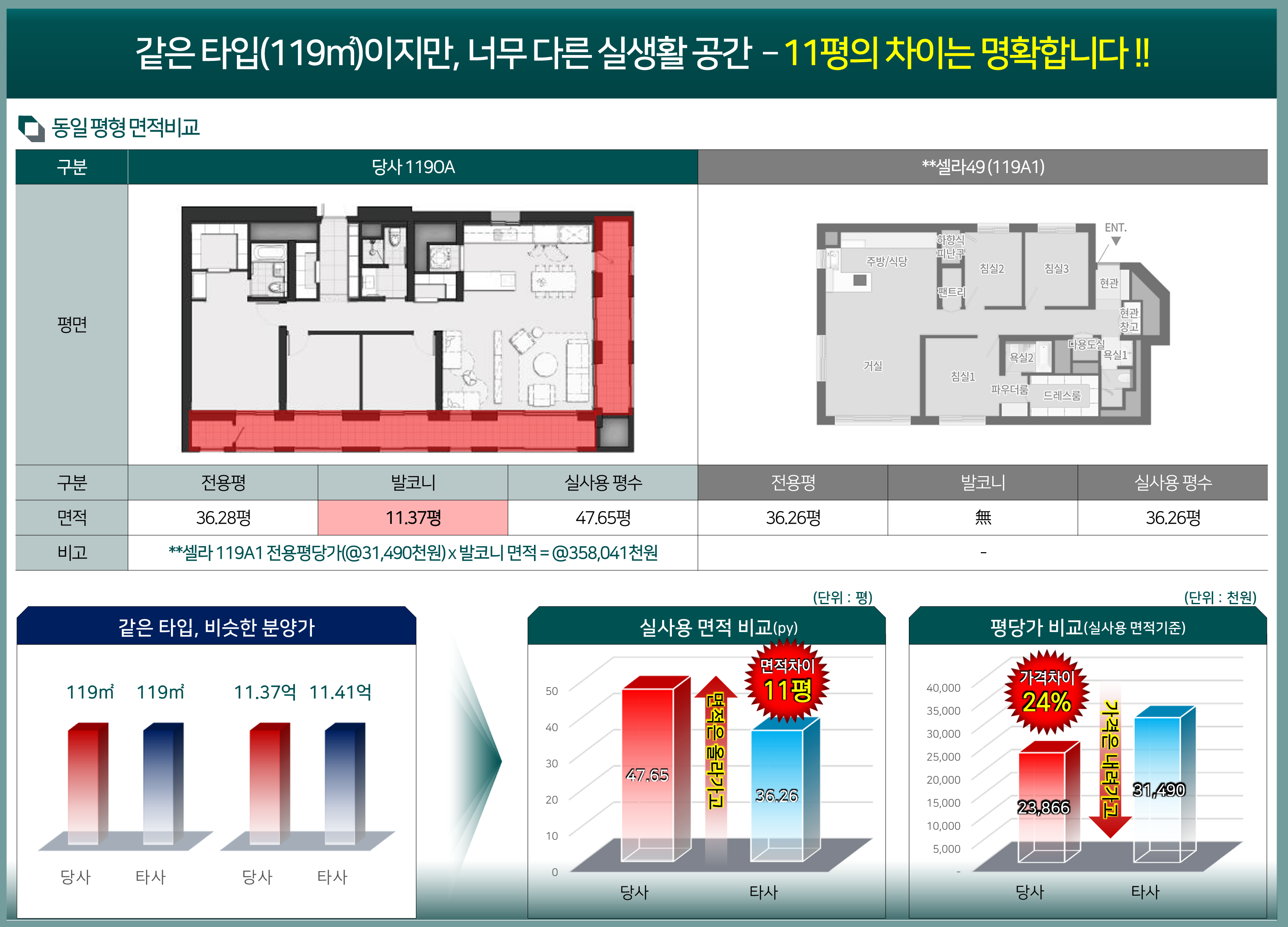 가격, 실사용면적 기준으로 보면 합리적입니다